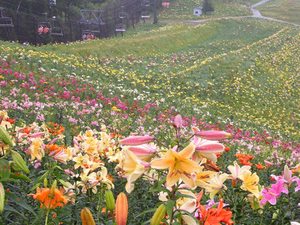 直径20cm以上でユリ科最大級 花言葉は威厳、甘美だそうです。 雨上がりの朝は澄んだ空気にしっとりと香り、夕刻は斜陽を受けて物憂げにうつむく、 開花は3割程度で今月末頃ピークを迎えるという。 今日の下野新聞から引用させて頂きました。 那須街道の紫陽花は知っていましたがヤマユリが1万本も咲くなんて知りませんでした。 此れは見る価値がありますね~ 7月20日~8月31日まで那須温泉神社境内にて朝6時~8時までの2時間 ニッコウキスゲの群生地として知られ毎年7月上旬から鮮やかな黄色い花を次々開花、現在六分咲き今週末がピークで15日頃まで楽しめるそうです。 7月19日開園